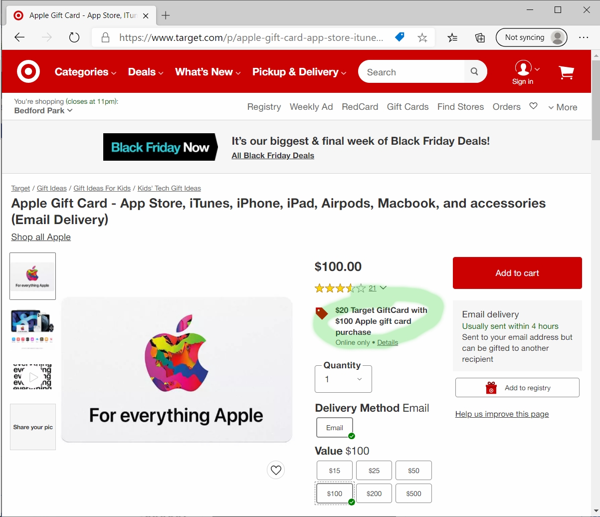 Deal: Free Target $20 Gift Card with $100 Apple Gift Card Purchase