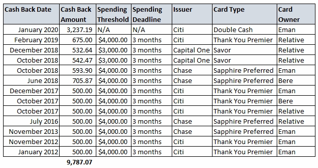 In the last five years, since January 2015, I’ve earned $3,237.19 cash back from just using my Citi Double Cash credit card that offers 2% cash back on all purchases, which I waited to redeem until earlier this month. If I include the signup bonus schemes which I’ve only tracked since 2012, then that’s an additional $6,550 or about $9,787 total since then. If I were to estimate how much cash back I’ve received in the past decade, I would say I’ve certainly made at least $12,000 since 2010 by doing nothing more than paying for things with a credit card. #MoneyElite.
